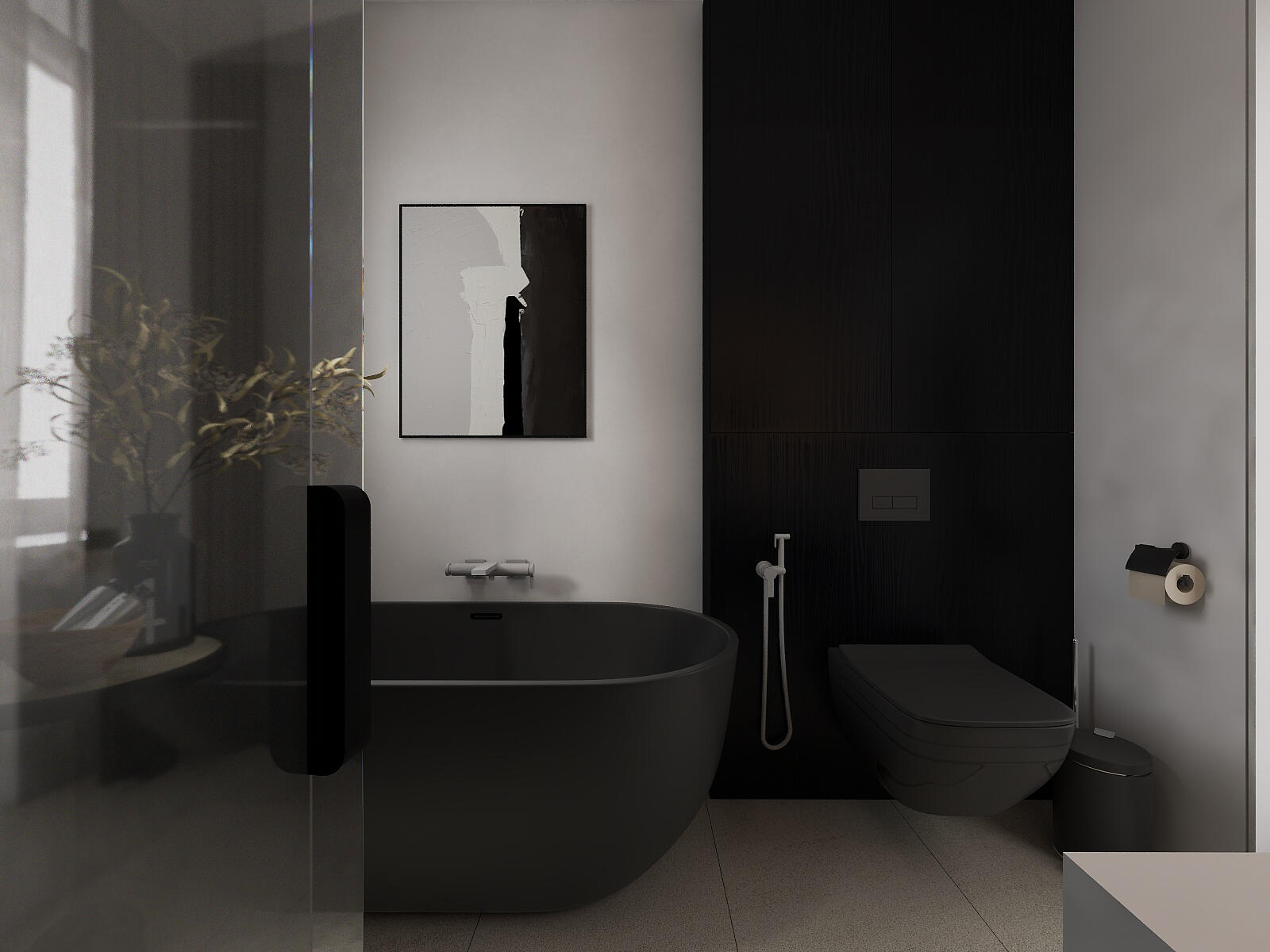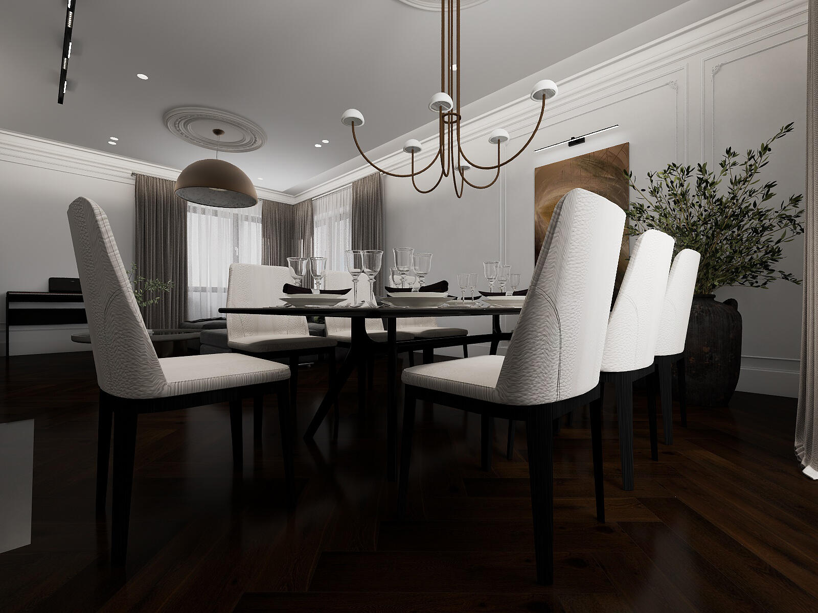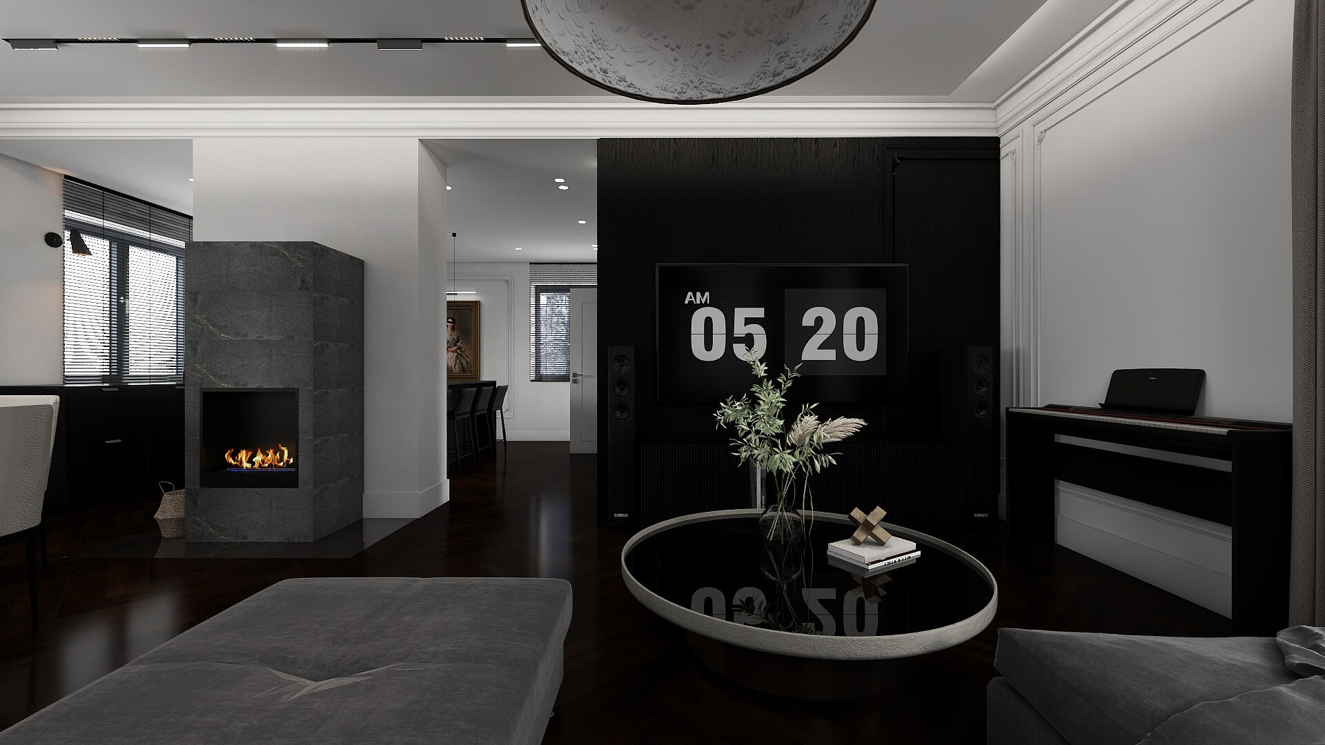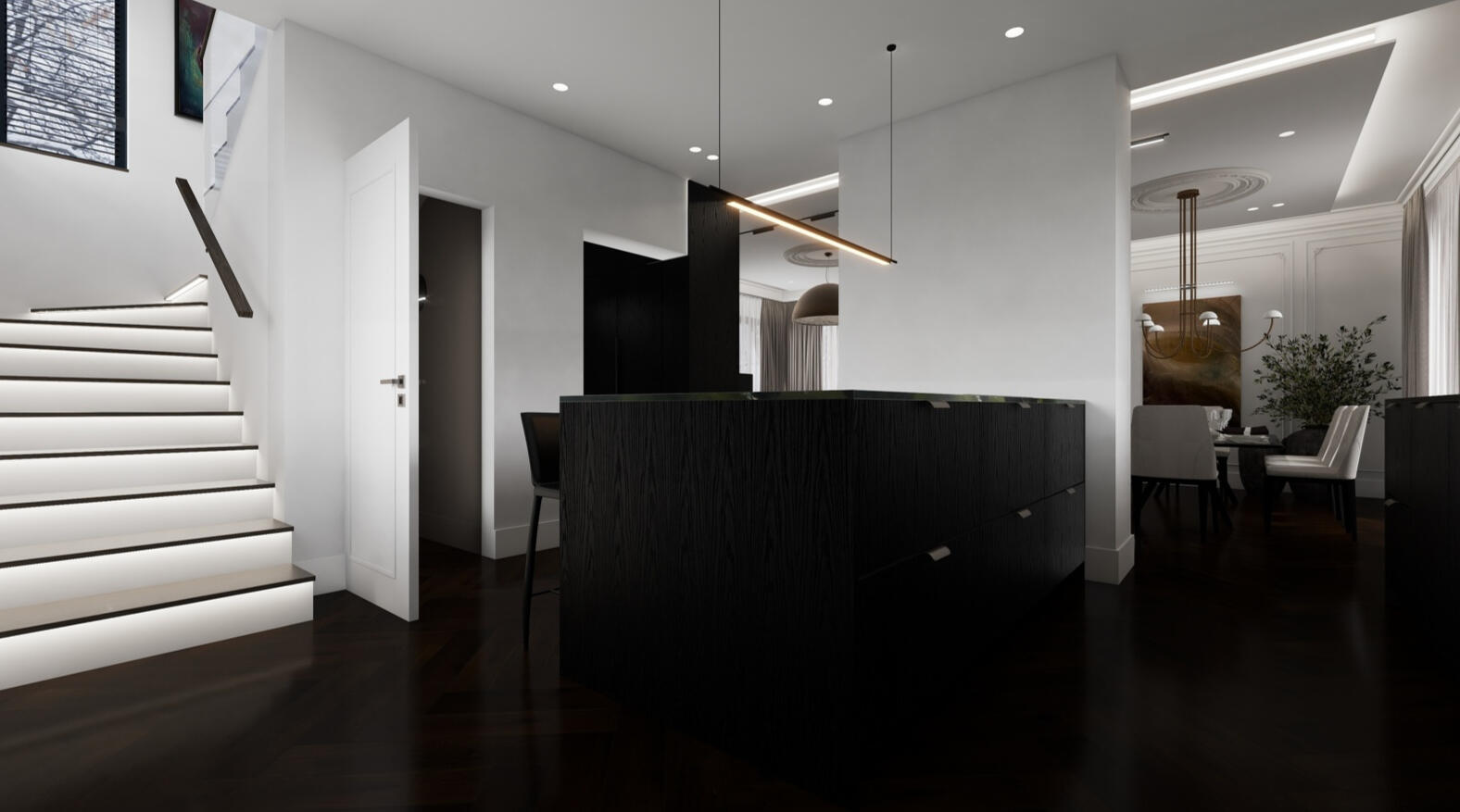Modern elegant interior with strategic black accents.